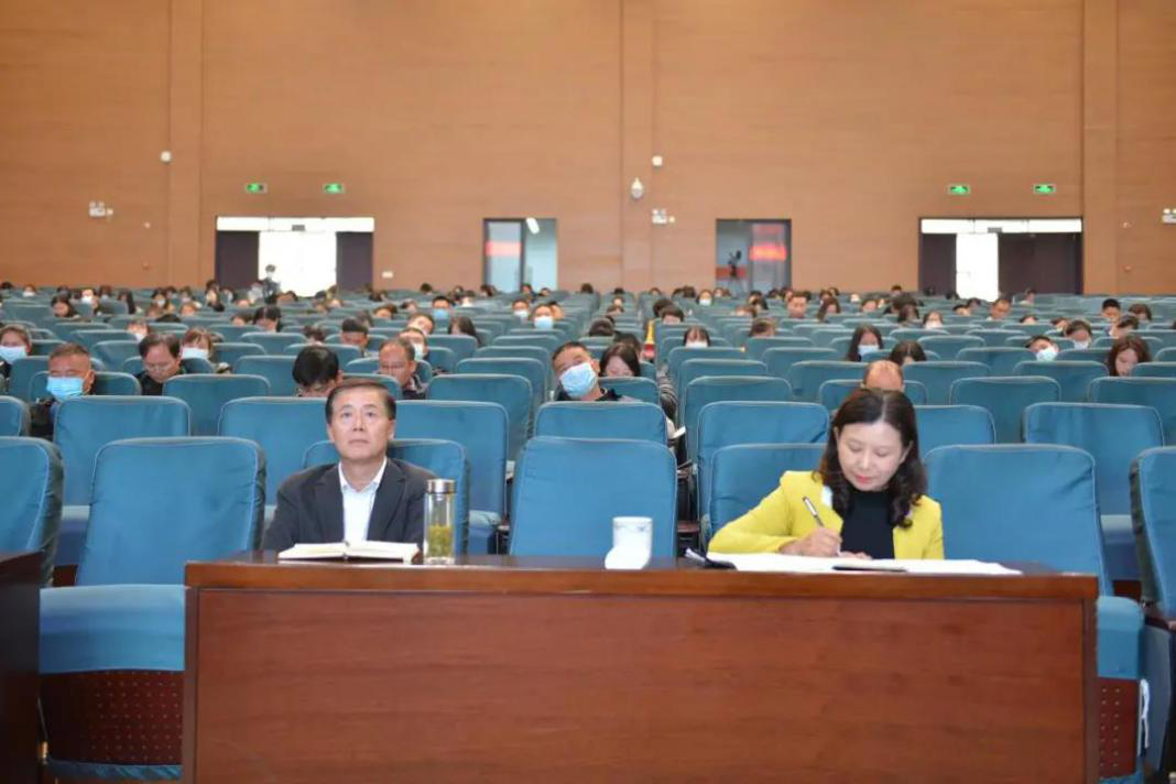 全体教职员工以及学生代表参加报告会。