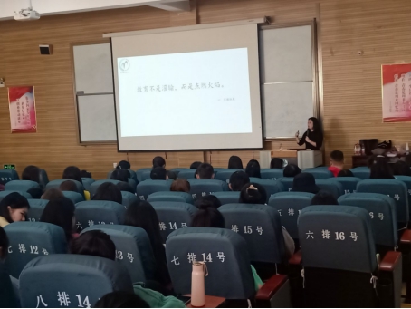 不易与收获等几个方面与同学们作了分享,也向大家传达了自己“以和为教,大爱育人”的教育观念。讲座最后,她引用了蒙台梭利的“教育不是灌输,而是点燃火焰”作为赠言,希望同学们能够在今后的专业发展道路上不惧困难,一往无前。