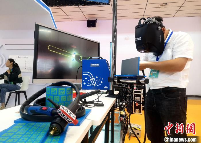 图中,职业院校学生正在操作焊接模拟器。 沙见龙 摄