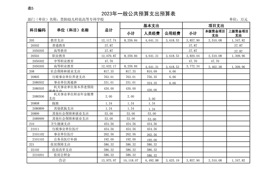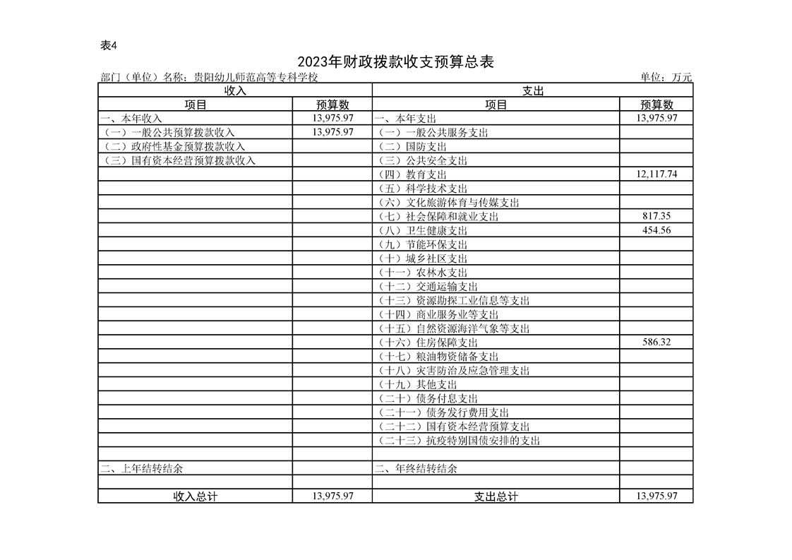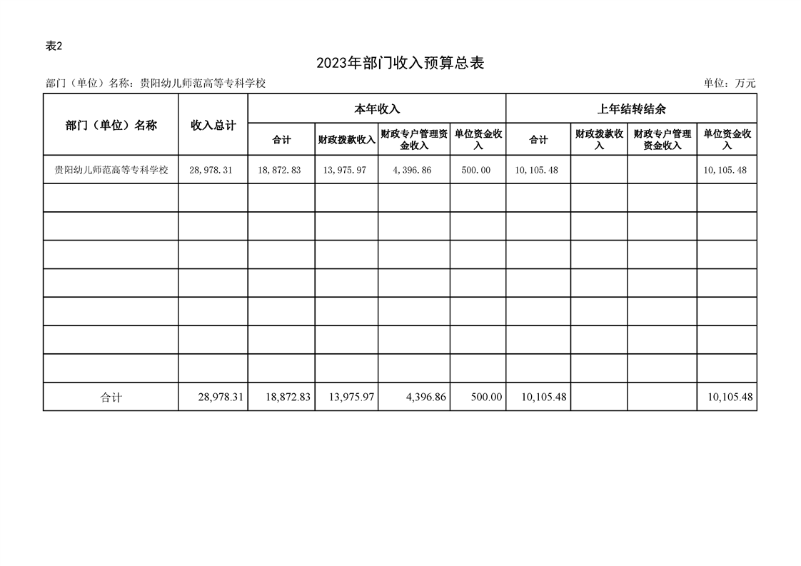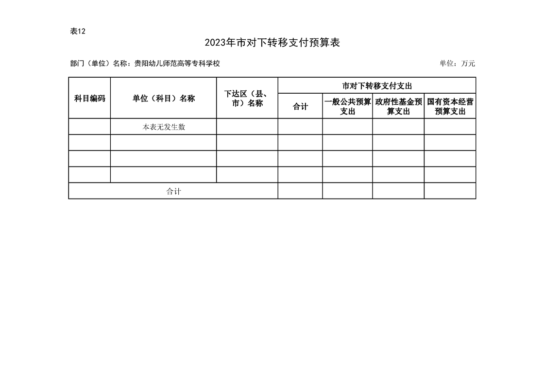 2023年市级部门预算公开表信息