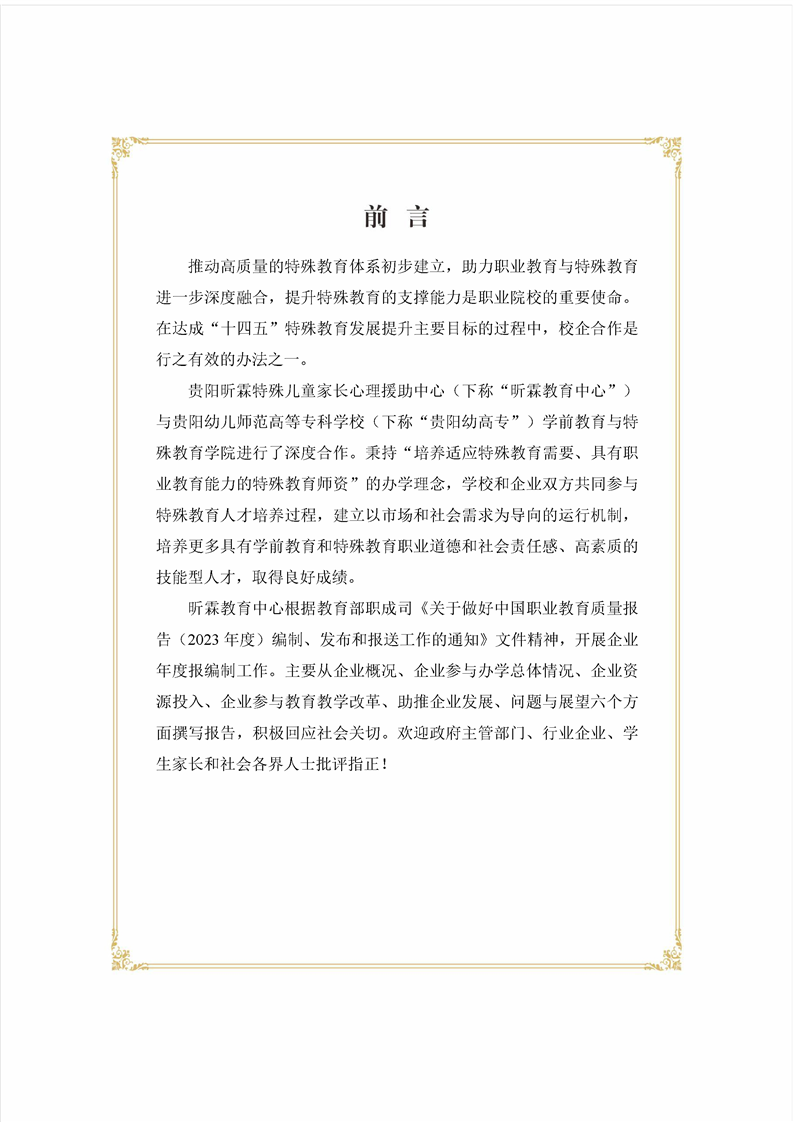 贵阳昕霖特殊儿童家长心理援助中心参与高等职业教育人才培养年度报告(2023):Beat365唯一官方网站