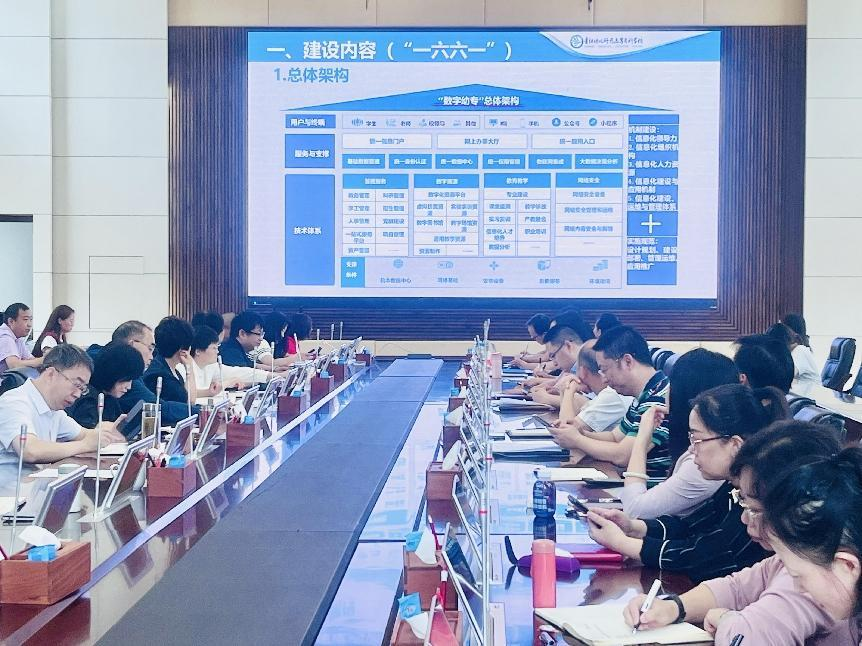 会上,学校信息与网络中心就数字幼专建设的核心内容、数据治理的关键举措、阶段性建设进展、当前面临的挑战及下一步计划四个方面进行了详细汇报。校聘专家侍大明教授就《“数字幼专”赋能学校高质量发展》作专题报告。报告中解读了《职业教育信息化标杆学校建设指南》《职业院校数字校园规范》等职业教育数字化转型相关政策文件。