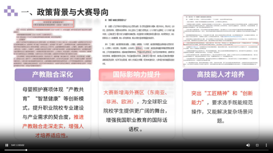 图一为苗苗老师为大家解读“母婴照护”赛项政策背景