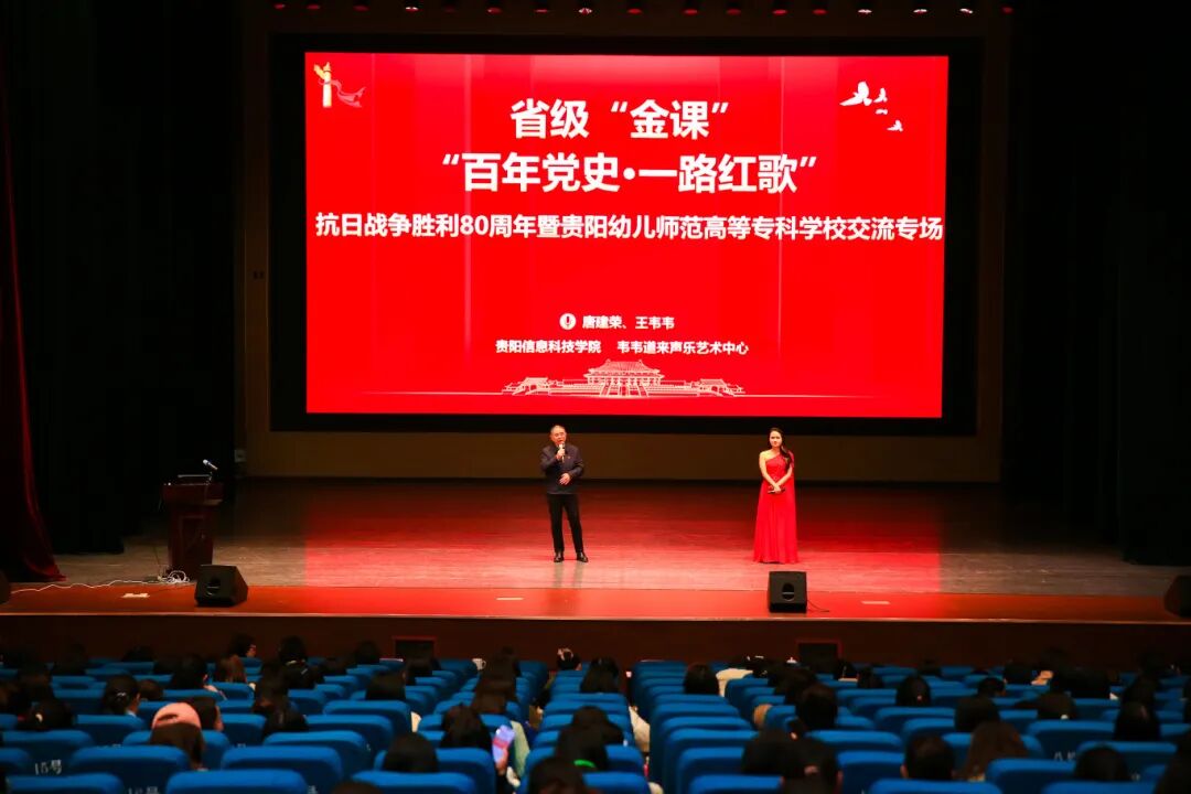 百年征程波澜壮阔,红色基因代代相传。为深入贯彻习近平新时代中国特色社会主义思想,推动党史学习教育走深走实,11月14日,省级思政金课“百年党史·一路红歌”音乐党史课在学校音乐厅隆重举行。本次活动特邀重量级嘉宾联袂呈现——教育部直属高校特聘党建联络员、国家国防教育库专家、贵州省省管专家、贵阳信息科技学院校长唐建荣教授担任主讲,抒情花腔女高音二级演员、独立音乐人、第十九届群星奖获得者王韦韦担任演唱嘉宾。学校党委委员、副校长潘丽芬主持,600余名师生代表现场参与聆听,共同感受“史”与“歌”交融的红色力量。