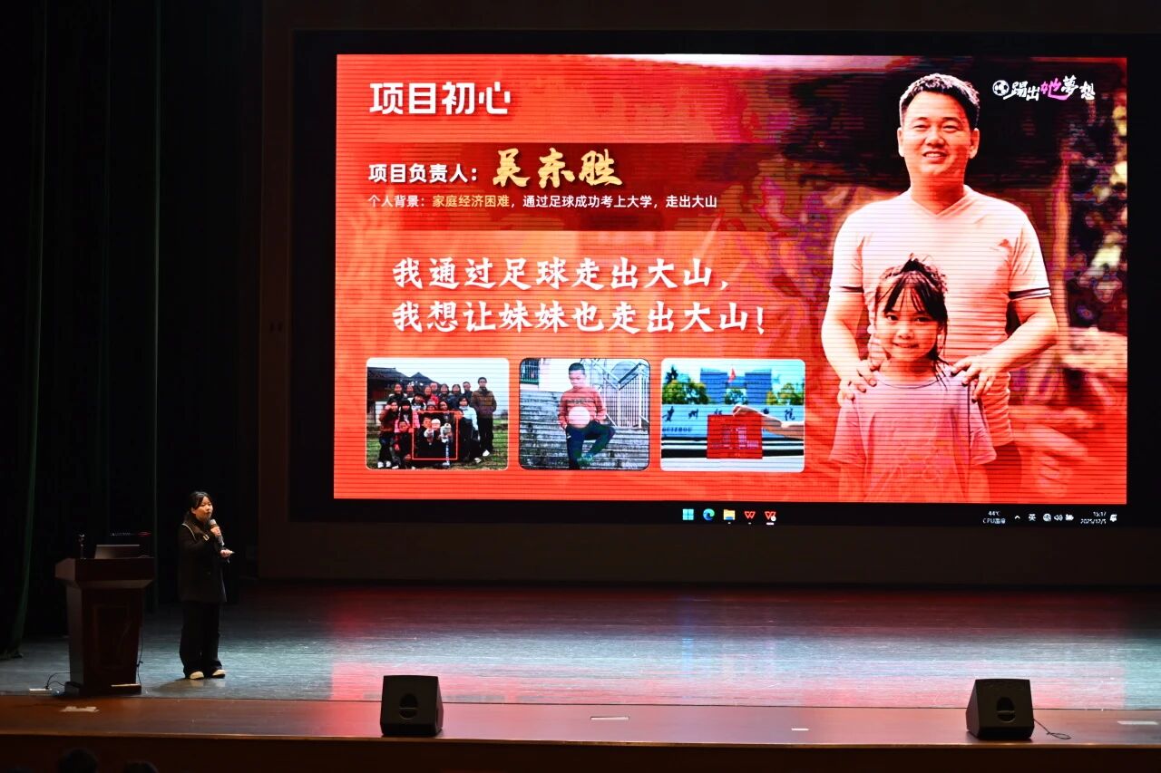 本次活动,实验实训中心特别邀请到贵州省闯闯酒业创始人龙良分享了从大学生创新创业大赛起步,一路斩获"三创赛"全国特等奖的成长故事。他的项目《闯四方——全国首款青年低度竹荪酒》已走向市场,并有产值体现。他说,创业就是不断闯关,学校教会不仅是技能,更是敢闯会创的底气。贵州师范学院2024年中国国际大学生创新大赛红旅赛道金奖项目《踢出她未来》李显娅同学进行项目分享,她用足球改变乡村女孩命运的故事,深深打动了每一个人的心。