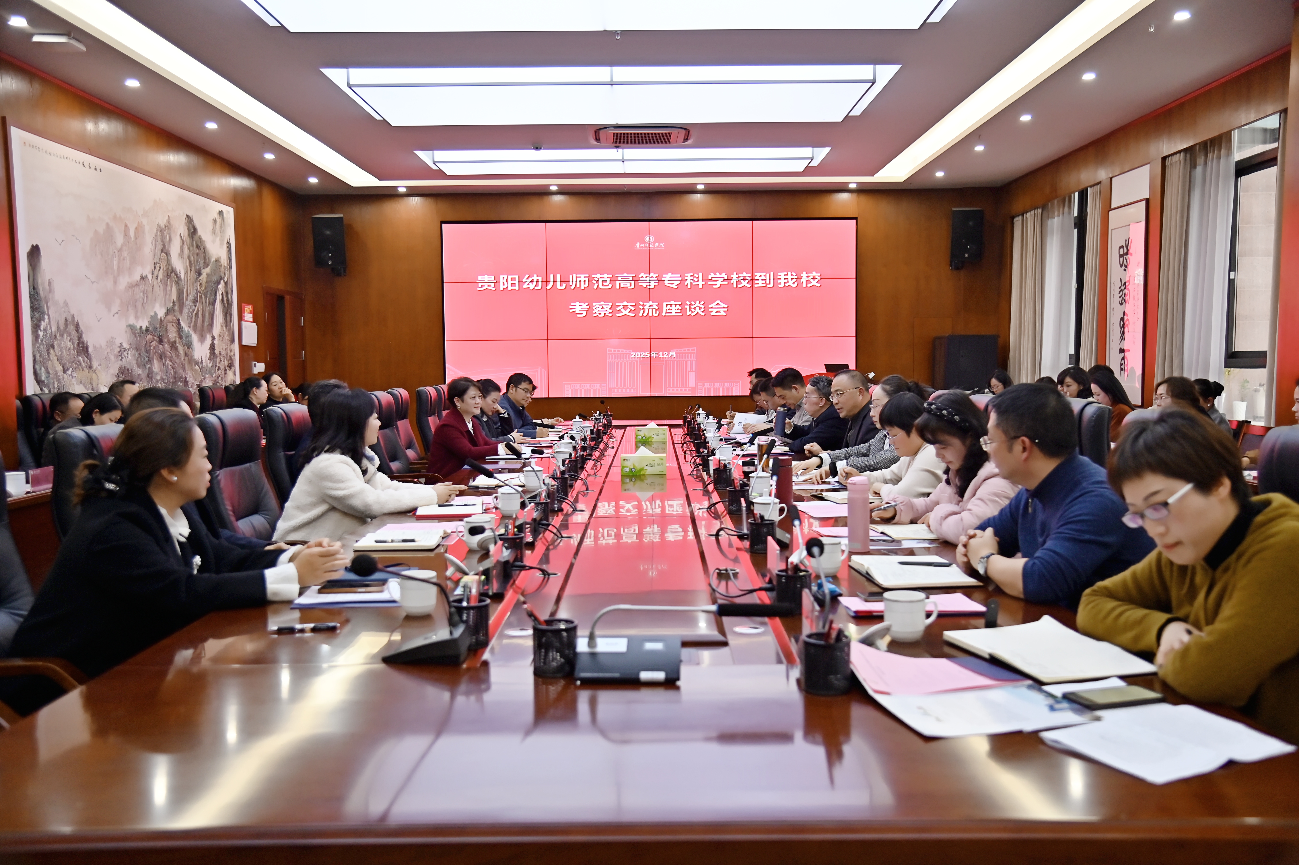 12月9日,校党委书记李华荣,校党委副书记、校长任洁带领学校领导班子及各系(部)、处(室)、馆(中心)负责人到贵州师范学院考察交流,旨在学习先进办学经验,深化两校合作,共同探索师范教育高质量发展新路径。