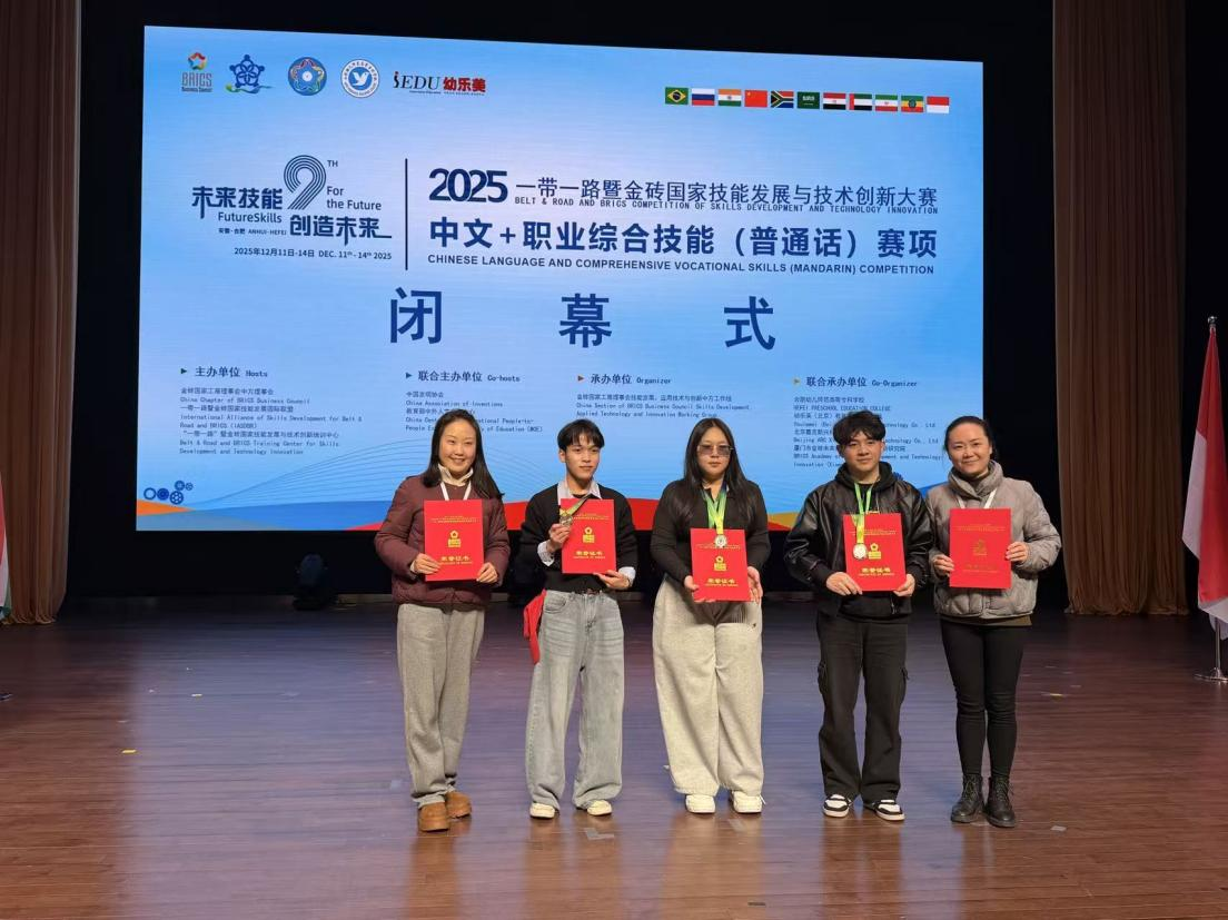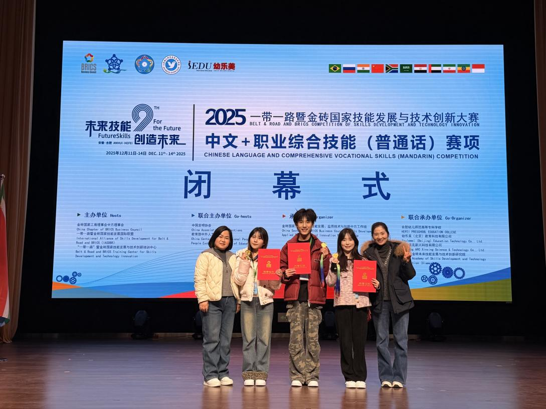 在刚刚落幕的2025年“一带一路”暨金砖国家技能发展与技术创新大赛—中文+职业综合技能(普通话)赛项中,Beat365师生凭借扎实的专业功底、出色的语言应用能力与卓越的团队协作精神,在激烈的竞争中脱颖而出,斩获多项殊荣,成绩斐然!