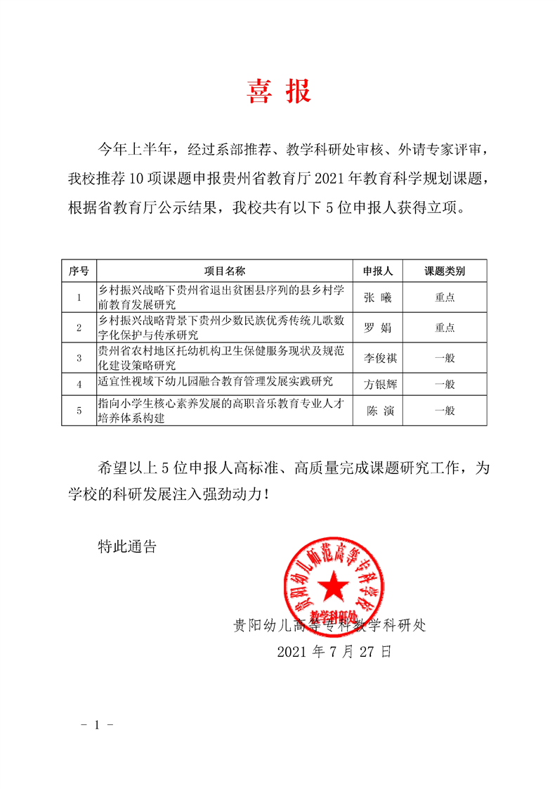 Beat365申报贵州省教育厅2021年教育科学规划课题喜获立项