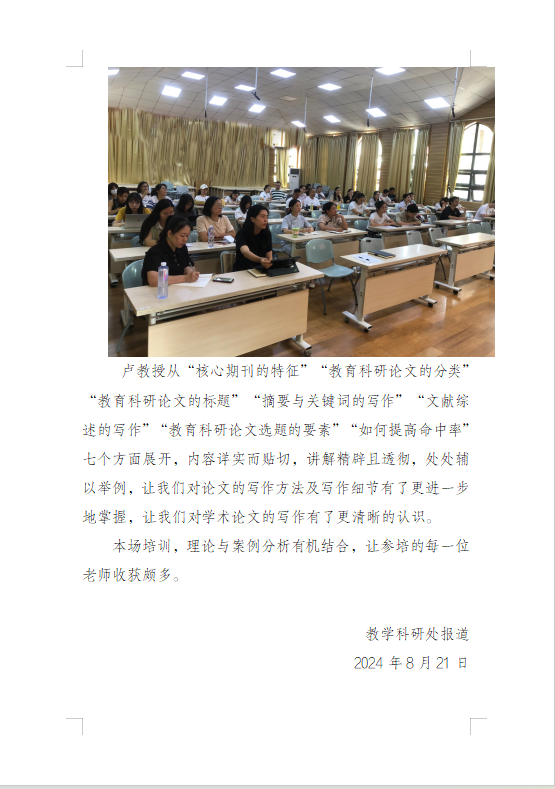 科研论文写作培训在Beat365举行 ——编辑眼中的论文:核心期刊教育科研论文的表达