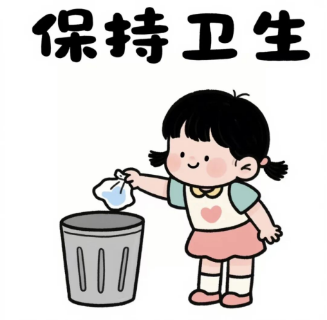2.课后做好“随手清”,不留半点“小遗憾”。离开座位前,请记得将纸巾、零食袋、废弃小卡片等垃圾一一收好,主动投入教室或楼道的垃圾桶,让桌面、地面始终保持干净清爽,为下一位使用者留下整洁的学习环境。
